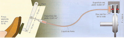 Aquest també és el principi que regeix el funcionament dels frens hidràulics, que transmeten la pressió del peu a través del líquid de frens fins la pinça que apreta els discs de fre.