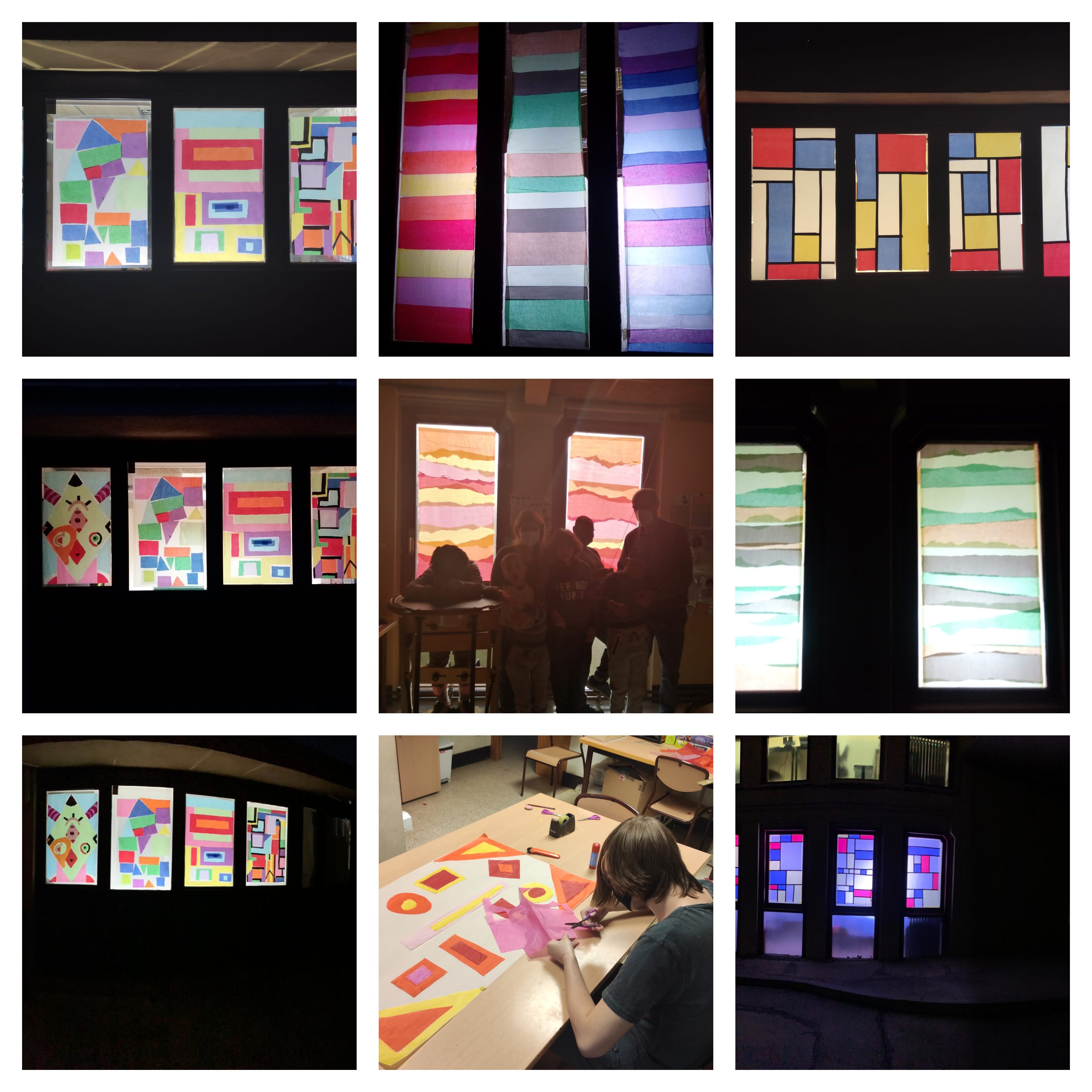 La instal·lació d’aquest any es titula ELS FARS DE LA BAUHAUS i es fa al centre mateix. La proposta ha sigut tapar les finestres de l’escola amb paper vegetal, fent-hi al damunt un muntatge inspirat ens els i les artistes de l’escola Bauhaus. Cada etapa ha triat un autor diferent, fins i tot alguns han fet creacions pròpies, partint sempre de les formes geomètriques, tret característic del seu art. Les obres queden il·luminades des de l’interior i així caminant per fora es poden veure.