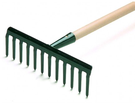 . Escombra metàl·lica : normalment s’utilitza per recollir fulles, però també ens pot ser útil per acabar d’aplanar la terra o escampar el compost.