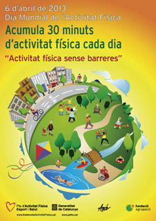 La Generalitat de Catalunya impulsa per quart any consecutiu la celebració del Dia Mundial de l’Activitat Física el proper 6 d’abril de 2013 o qualsevol dia comprès entre el 3 i el 21 d’abril.