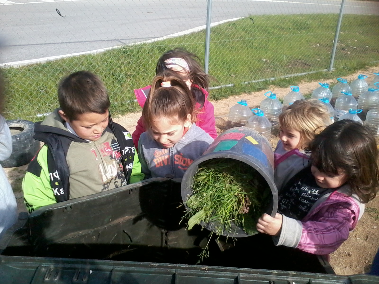 Cuidem el jardí, reguem les plantes i les flors, en plantem de noves, netegem el jardí i fem compostatge…