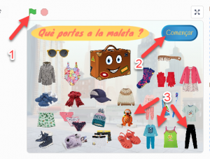 Un moment important de tot viatge és fer la maleta. Nosaltres l’hem fet amb l’aplicació Scratch. En aquesta activitat primer hem pensat què necessitàvem per fer el viatge, quin tipus de roba cal triar. Així anem arrossegant cada un dels objectes o peces de roba dins la maleta. Per acabar, podem revisar el resultat final. Mentre fem la maleta, anem dient i raonant el que triem, i per això també ha estat una activitat de llenguatge oral molt interessant.