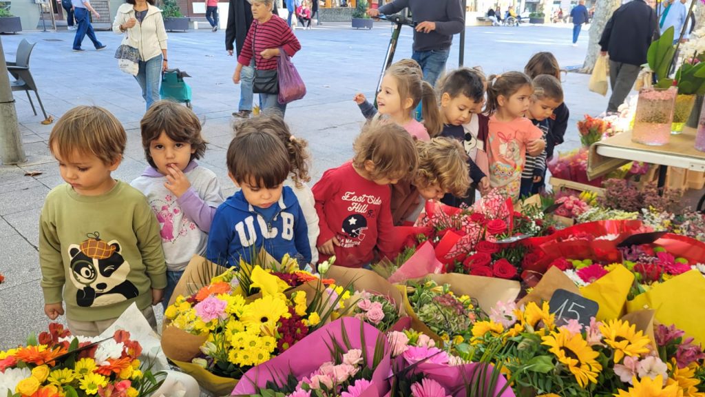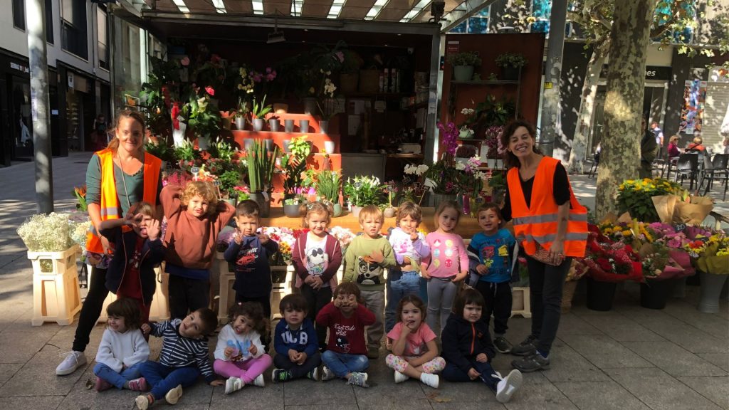 Així que vam decidir, dies després, caminar una mica pels voltants de l’escola a veure si descobríem flors. Quina sorpresa que es van endur els infants quan van veure flors a les jardineres de la Plaça Santa Anna i quan finalment vam arribar a la Floristeria on ens van deixar apropar-nos amb molta cura a les flors i observar-les de ben a prop. N’hi havia moltes, de colors, formes i olors diferents. Són tan boniques!- expressaven alguns infants.