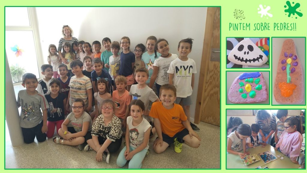 Avui ha vingut a l’escola la mare de la Sia per ajudar-nos a pintar sobre pedres! Sí, sí tal i com ho llegiu! Al principi no ens ha semblat gaire difícil, però quan ens hem posat a crear … ui com hem suat per poder pintar, no era gens fàcil! Sort que teníem l’ajuda de la Jenni i de la mare de la Sia per ensenyar-nos a fer-ho amb més calma. La primera pedreta que hem pintat ha estat el nostre primer contacte amb aquesta tècnica, però després ja ens hem engrescat i quan era l’hora de marxar, nosaltres ens haguessim quedat pintant molta més estona … en pocs dies ja podreu veure el resultats de les nostres noves obres d’art!