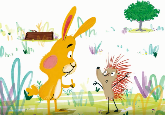 Hoy en clase hemos visto el cuento del erizo y el conejo, que se apañan para conseguir que el sol brille y les caliente. Para ello, convencen a una nube para que se aparte.