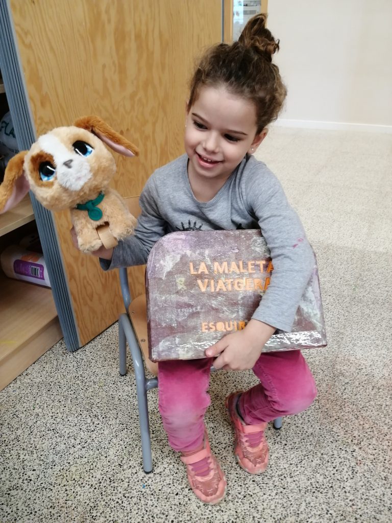 Aquesta setmana la protagonista ha estat la Carlota! Ens ha ensenyat ben contenta, totes les cosetes que portava a la maleta. Primer ha començat per ensenyar-nos la seva gosseta “Lula”, ens ha fet una mostra de com la passeja i ha deixat que tots els esquirols li fessin carícies! Després ens ha ensenyat un joc amb daus “Storycubes” que són uns daus per inventar contes i en un moment ha tirat els daus i amb les imatges que han sortit ens ha explicat un conte ben original. Per últim, ens ha ensenyat unes làmines màgiques, que quan pintes amb el retolador d’aigua apareix el color en els dibuixos!