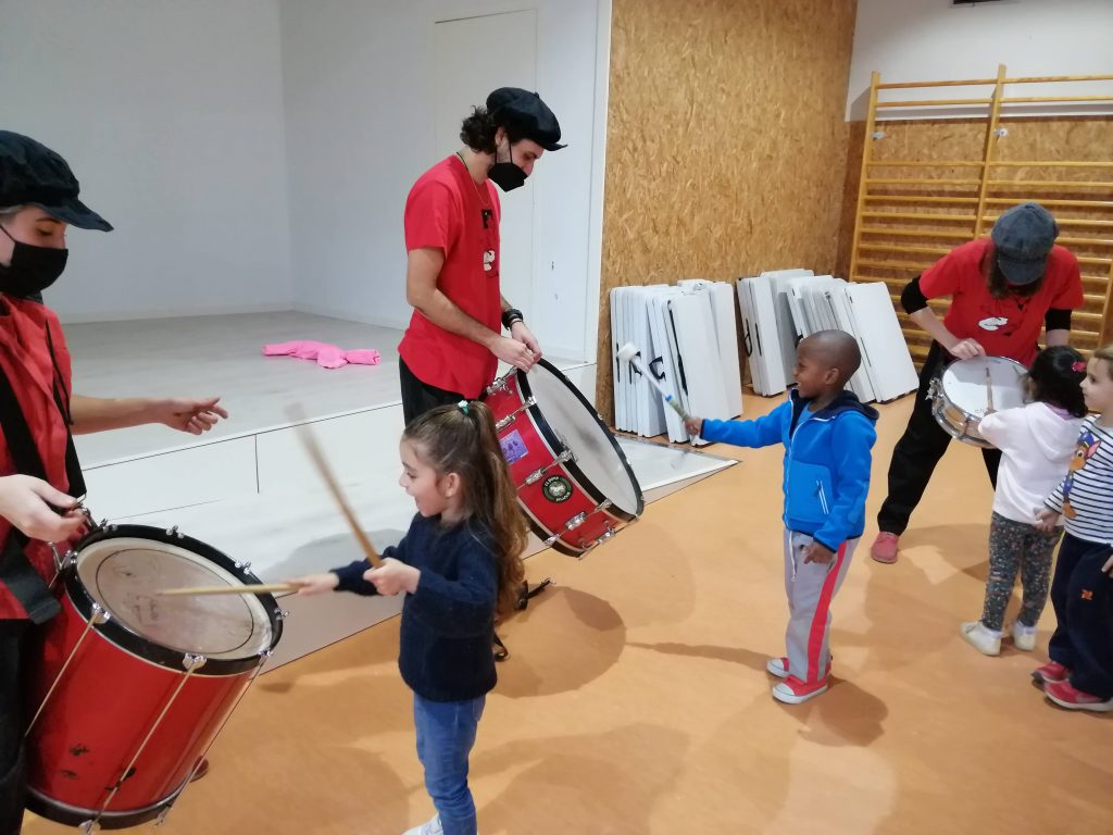 En segon lloc vam anar al gimnàs de l’escola on hi havia una petita part del grup de timbalers i ens van explicar breument algunes coses sobre el tipus de música que toquen, van tocar una estona i vam ballar i també ens van deixar tocar els instruments.