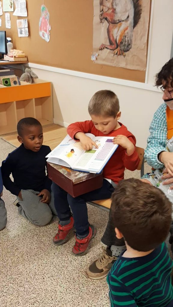 Avui l’Arcadi ha vingut a l’escola amb la maleta viatgera plena de coses. Ens ha ensenyat una fotografia molt bonica on es veia la seva família davant d’un llac d’alta muntanya. Després ens ha volgut ensenyar un llibre de coneixements que parlava de l’espai, els planetes, els meteorits, el sol, la lluna… i a mesura passava les pàgines ens anava explicant anècdotes, curiositats, semblava un científic. Dins la maleta també hi havia dos ninus “Superthings” i un conill amb un joc per imantar una bola i arrossegar-la fins a un forat.