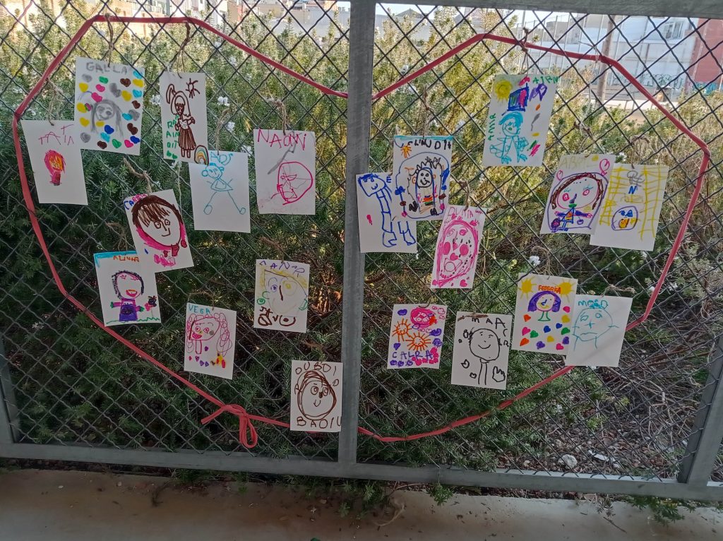 I per acabar, a la tarda, ens hem dibuixat i hem penjat el nostre retrat dins del cor que hem fet a la tanca del porxo.