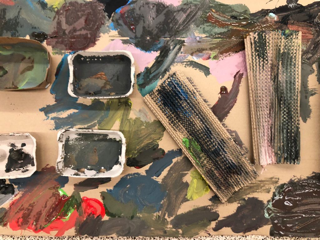 A l’aula preparem un gran mural amb base de cartó i al damunt hi enganxem diferents elements com caixetes de cartó, oueres, tubs, safates i retalls de cartó ondulats. Seguidament, oferim als infants temperes de diferents colors i pinzells i els convidem a explorar el volum dels diferents elements, les tres dimensions, les textures, els colors i les formes en una proposta lliure i creativa on hi hagi espai per l’expressió creativa i el gaudi.