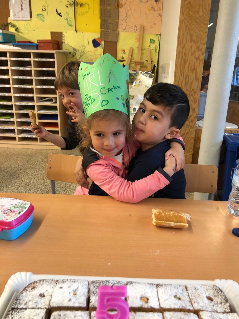 Avui ha sigut l’aniversari de la Carla i ens ha convidat a un pa de pessic boníssim, entre tots i totes li hem decorat una corona de cartolina i li hem cantat la cançó d’aniversari.