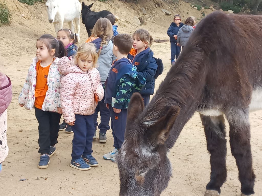 Després l’Aina ens va acompanyar i ens va ensenyar com fer de cuidadors i cuidadores dels rucs. Vam fer moltes activitats divertides com carregar el ruc amb llenya, raspallar-lo, passejar-lo fent un circuit, i donar-li menjar. També ens va explicar que fan els rucs quan els pica l’esquena i ho vam provar nosaltres.