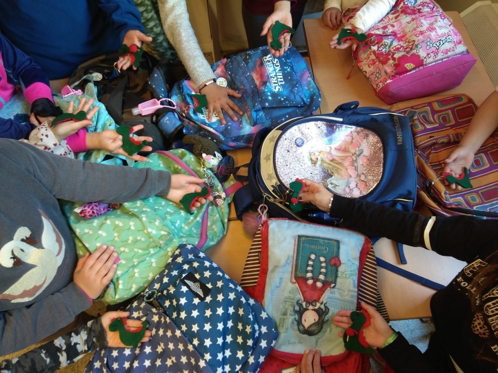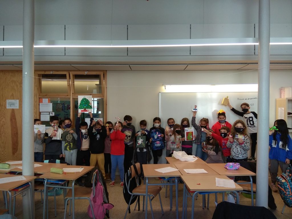 Les Meduses vam acomiadar el trimestre fent l’amic invisible. Abans d’obrir els regals, els més menuts de l’escola ens van passar a veure per donar-nos les neules i els torrons que el Tió havia cagat per la nostra classe. Cap nen i nena es va resistir a tastar el torró de xocolata! Al tornar del pati i amb la panxa plena va ser l’hora d’obrir els regals de l’amic invisible. I quines sorpreses: les Meduses van demostrar que estan fetes unes artistes! Meduses de roba, quadres, moneders, postals, jocs de taula, arbres de Nadal…i el millor de tot: els regals pels companys i companyes van ser fets a mà. Amb el bon regust de boca de l’amic invisible (i de la xocolata) vam desitjar-nos unes bones festes tot escoltant cançons de Nadal.