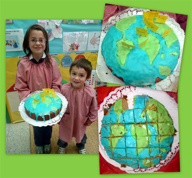 El dijous 21 de març, la Berta i l’Aniol ens han portat un pastís per celebrar el sant de la Berta. Era molt divertit. Amb sucre de colors hi han dibuixat el món i han posat les banderes dels països del projecte de les cultures.