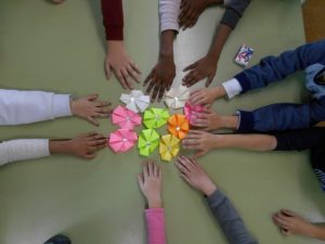 També hem aprofitat per fer una recerca lingüística de totes les llengües que tenim a 5è i 6è a l’aula, hem buscat cada valor i emoció en les diferents llengües i després les hem fet servir per escriure-les a la nostra postal.