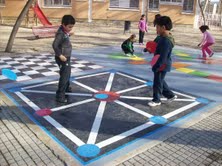 A l’escola Dalmau Carles de Can Gibert del Pla hem restaurat uns jocs de pati que ens havien quedat despintats.