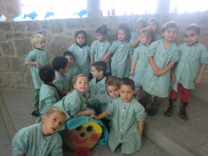 Sabeu què ens va dir? que l’haviem de trobar en algun lloc de l’escola, tapar amb una manta i alimentar! Buscant, buscant… el van trobar… li vam posar una mandarina, una mica d’aigua i una manta perquè no passi fred! Per acabar, li vam cantar la seva cançó! Tió, tió, caga turró…