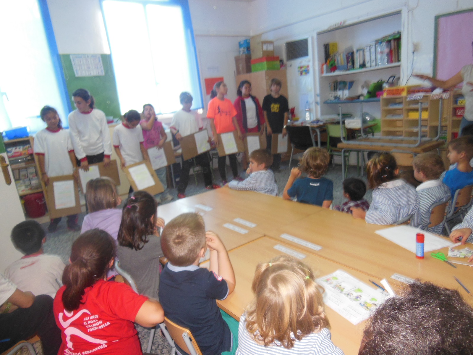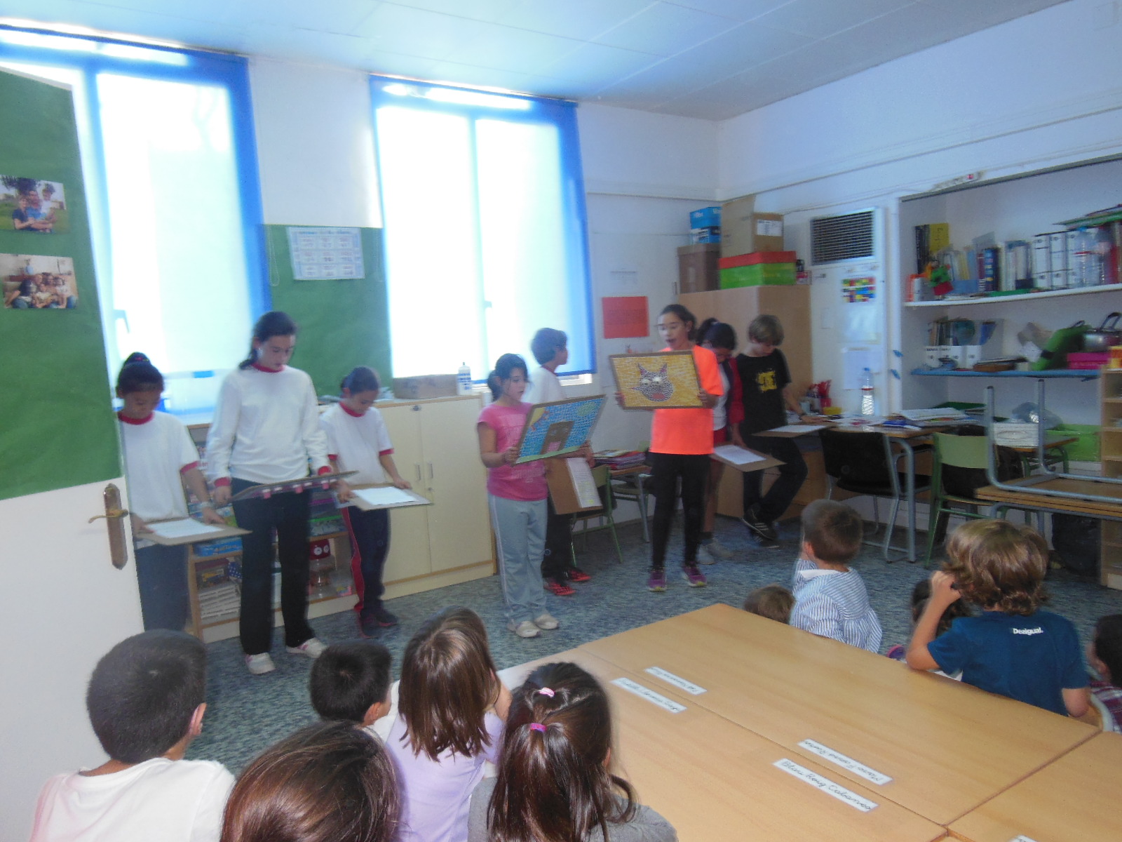 Un cop acabats els treballs, van començar a practicar la teatralització de la història, tant en català, com in English. Oh my Godness!!! Va ser genial!!! Ho tenien prou apamat… així que vam decidir anar a explicar the story als nens i nenes més menuts de l’escola.