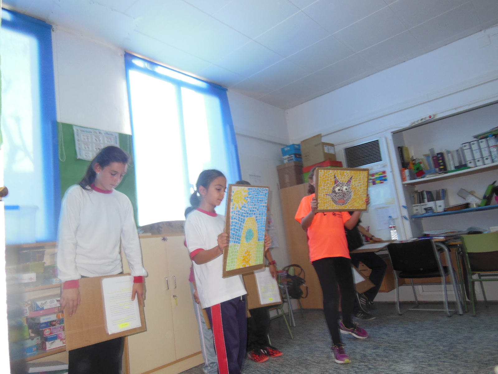 Els alumnes de cicle superior van treballar durant les sessions de plàstica i Art la tècnica del mosaic i collage entre d’altres. El seu objectiu era crear els diferents escenaris per explicar el conte d’Els tres porquets o The Three Little Pigs.