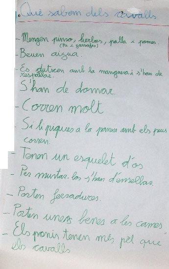 En una altra sessió vam fer el llistat de les coses que volíem saber dels cavalls, vam repartir els temes per grups i vam començar a treballar.