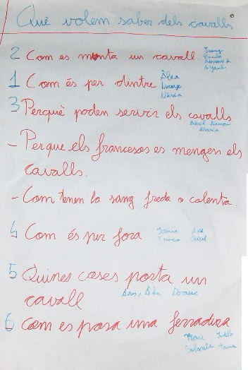 Primer els nens i nenes van proposar diversos temes i, d’entre tots, van treiar el dels cavalls.