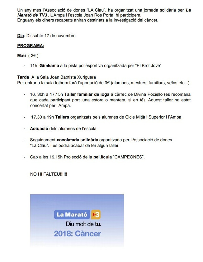 El dimecres a la tarda vam celebrar la Festa de la Castanyada. Amb la col·laboració de l’Ampa vam torrar les castanyes. Els nens i nenes d’infantil van explicar el conte de la castanyera i els/les de Primària ball de bastons. I, al final, els/les alumnes de Cicle Superior (disfressats de castanyers/es) van repartir les paperines.
