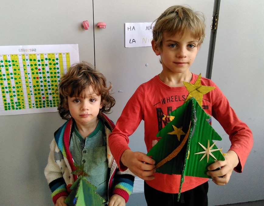 El Gael i l’Arthur han portat uns arbres molt decorats de Nadal que han fet amb la Mimi.