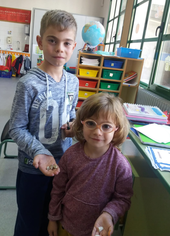 I el Martí i la Paula ens han volgut ensenyar unes pedretes del pati de la padrina Dolors molt brillants i boniques.