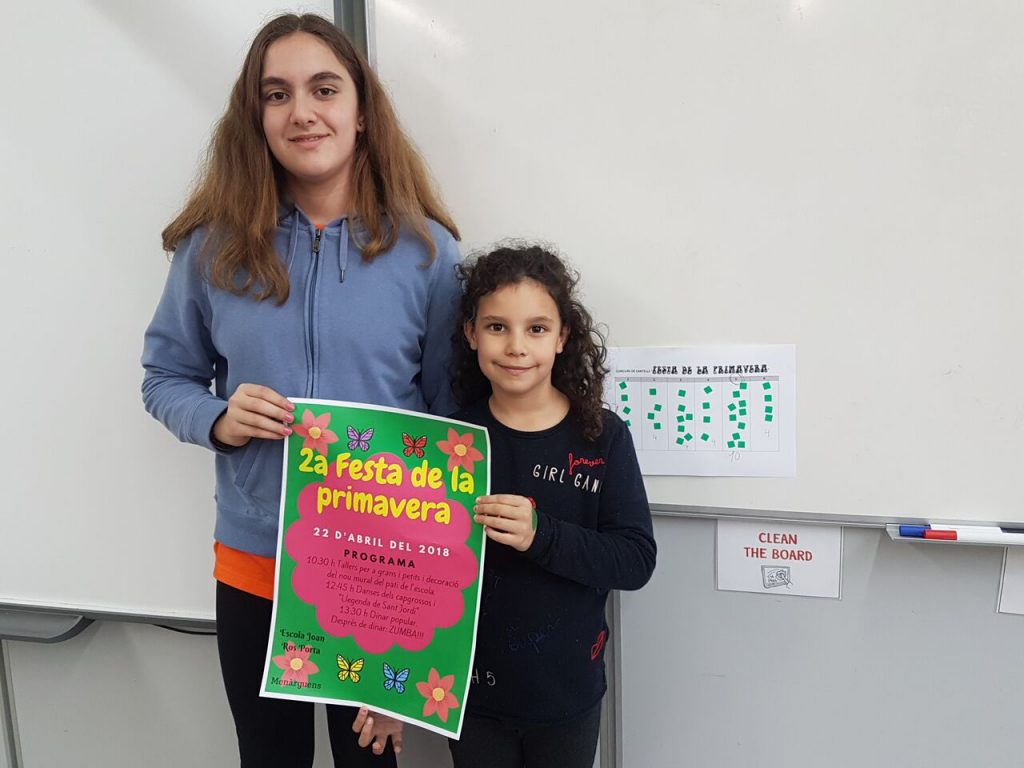El proper diumenge dia 22 celebrarem la II Festa de la Primavera a la nostra escola. Per aquest motiu, l’alumnat de 2n a 6è hem realitzat, en petits grups o parelles, els cartells per anunciar-ho. Com en altres ocasions, hem fet un “concurs de cartells”, on han votat tots els infants de l’escola i, el cartell guanyador, és el que utilitzarem per fer publicitat a la nostra festa. Les guanyadores del concurs han estat la Blau i la Jasmina… ENHORABONA CAMPIONES!