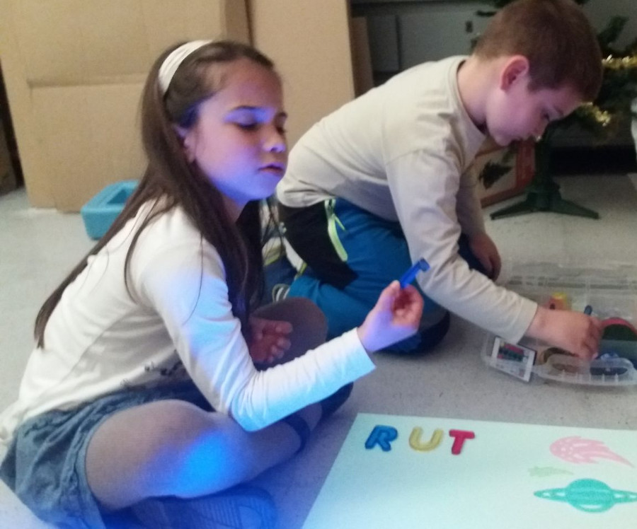 Avui a plàstica hem experimentat amb una tabla de fosforescència i llum negra i ha estat molt divertit i sorprenent.