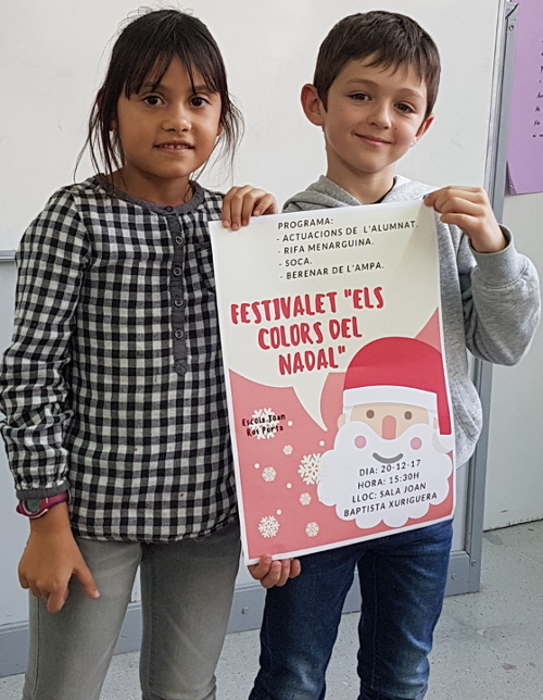 Com ja vam fer per la Castanyada, a l’hora d’informàtica l’alumnat de 2n fins a 6è, per parelles o petits grups, van realitzar un cartell per convidar a tothom al Festivalet de Nadal que celebrarem el proper 20 de desembre. Un cop realitzats, vàrem fer votacions i el cartell guanyador va ser… el de la Maria Mercè i el Miquel! Enhorabona campions! I també felicitem a la resta de nens i nenes perquè van fer uns cartells xulíssims. Us els deixem tots a la galeria d’imatges; esperem que us agradin i… us esperem al nostre Festivalet!