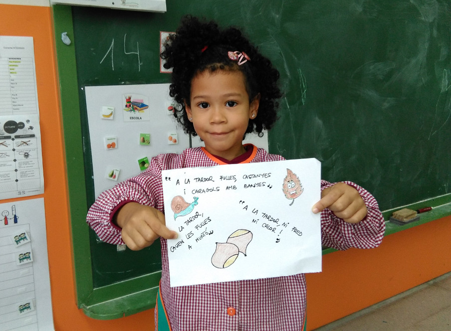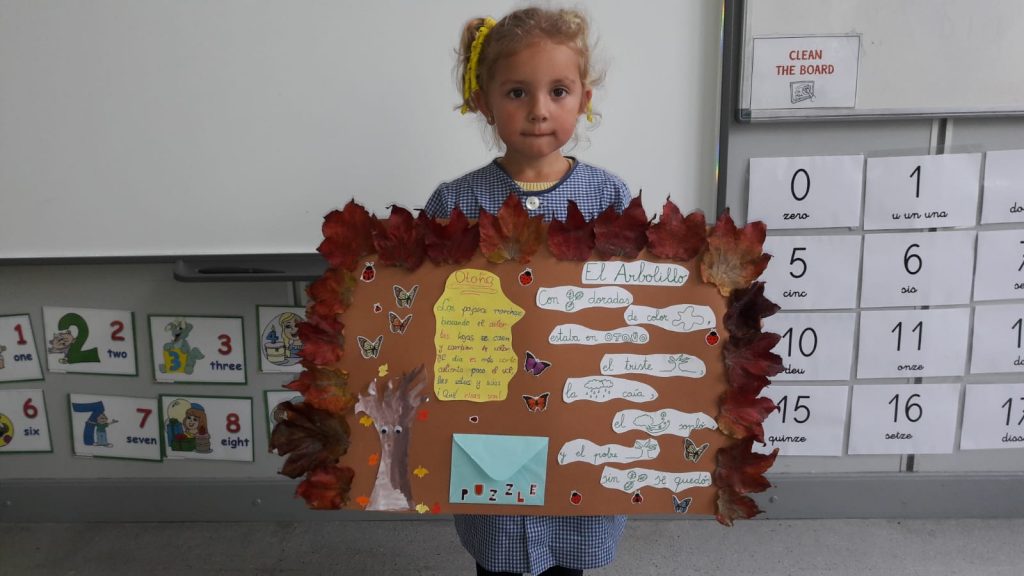 La Noemí ens ha tornat a portar un mural que fa fet amb la seva mare. Uns poemes de “el otoño” tot decorat amb fulles.