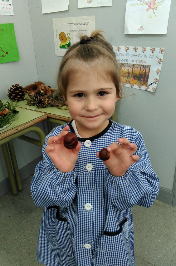 A l’aula d’Infantil ens han portat unes dites de la Tardor que han buscat amb els seus pares i mares: