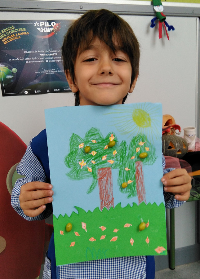 L’Aniol ha vingut super carregat de castanyes, glans, pedres volcàniques perquè ha fet una excursió a la Cova del Tabac amb la seva família.