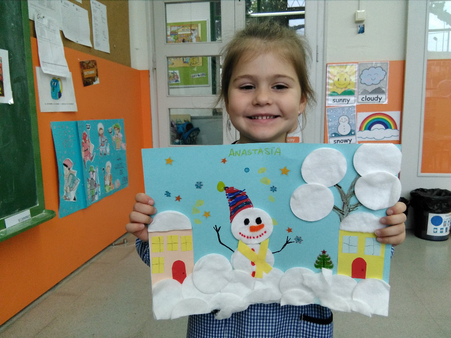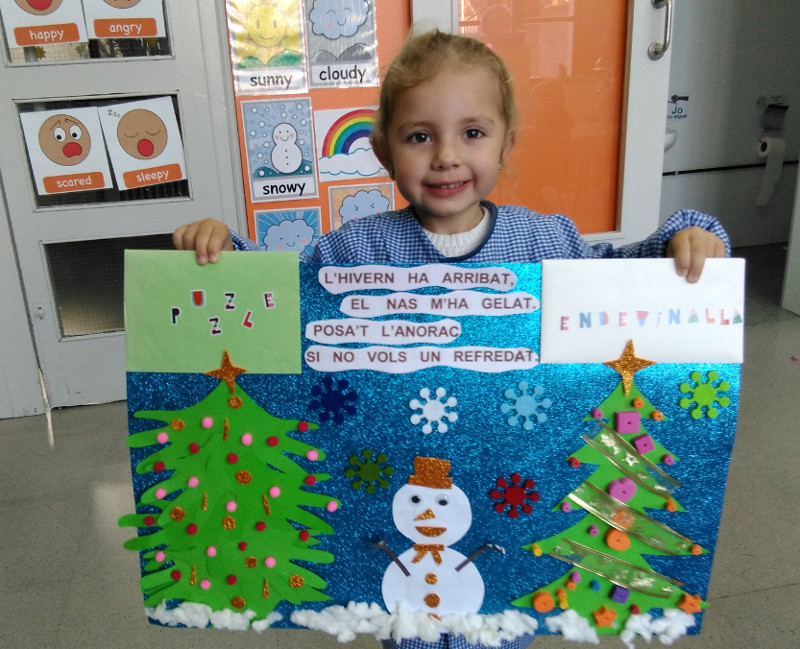 Com aquests dies ha fet molt fred,els nens i les nenes d’infantil han fet a plàstica l’arbre d’hivern amb neu.