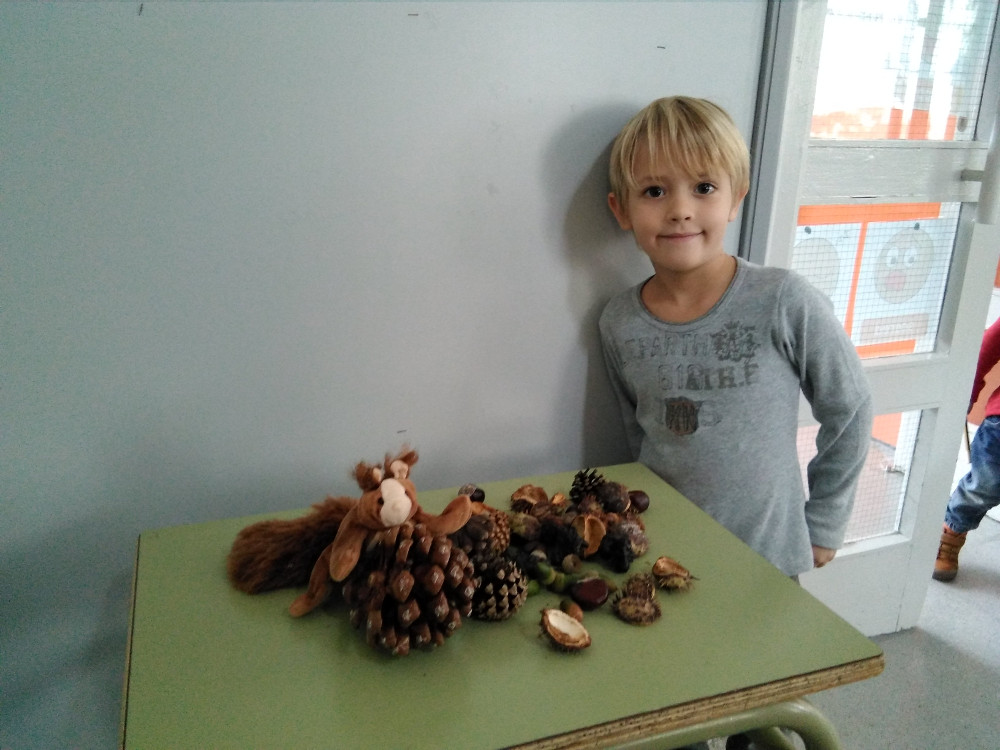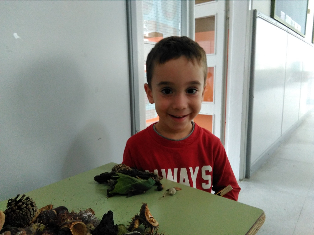 Avui el Pau Francesc ens ha portat fulles, glans, escorça, molsa i pinyes que va trobar tot passejant pel bosc.