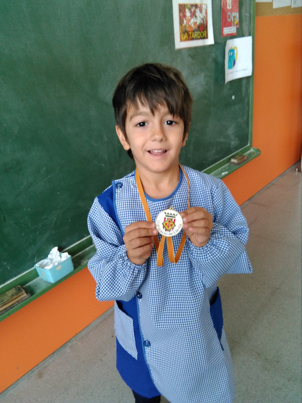 Avui el Marc ens ha portat la medalla que va guanyar a la cursa de Menàrguens, ja fa temps. Ens l’ha ensenyat i ens ha explicat que era brillant.