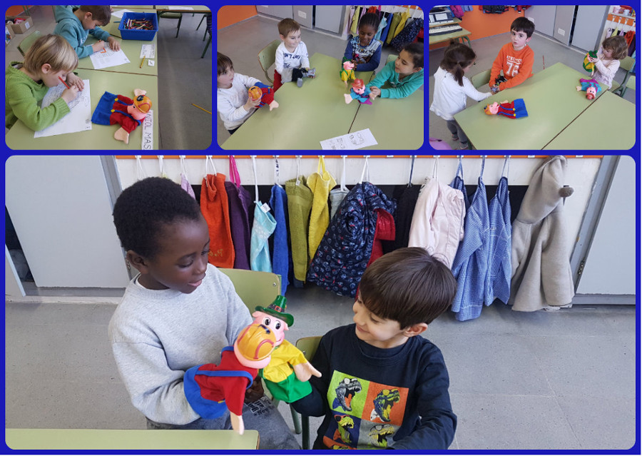 Seguim amb els contes populars a l’hora del conte. Avui ens han visitat els 3 porquets i… el llop ferotge! Durant uns dies ens acompanyaran per treballar la lectoescriptura a partir del títol, dels personatges, etc., així com l’expressió oral quan juguem a explicar-lo amb els titelles. Quina manera més divertida d’endinsar-nos en el món de les lletres!