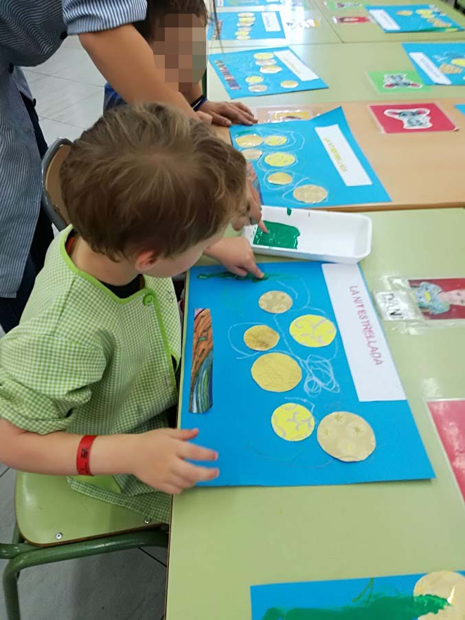 Avui la Glòria, ens ha preparat una activitat que hem gaudit molt! Hem conegut el treball del Vincent Van Gogh i cadascú ha pogut fer el seu quadre de “La nit estrellada”.