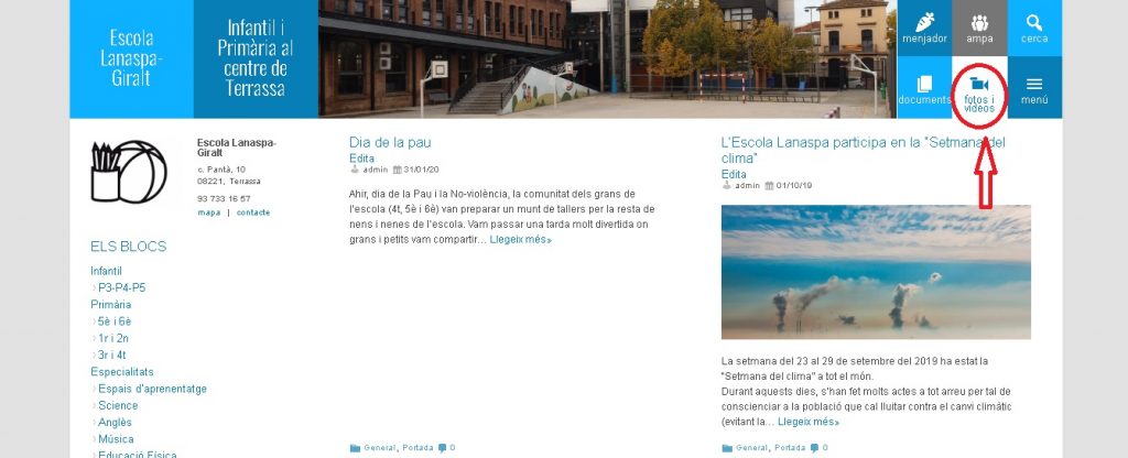 Les fotos i vídeos de les celebracions conjuntes de l’escola (Pregó de Carnestoltes, Dijous gras , Balls i Comparses, Rua de Carnestoltes), s’han inclòs en la pàgina “Fotos i vídeos” de la web de l’escola . Per veure-les, cal entrar en aquesta pàgina (veure la imatge 1) i introduir-hi la contrasenya (la mateixa que utilitzeu per entrar a “Multimèdia” d’aquest bloc).