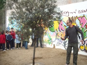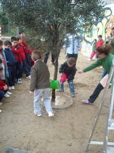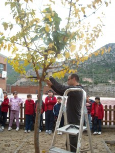 El passat dimarts a la tarda, els pares que formen part del Comitè Ambiental de l’escola, el Xavier Saumell i la Sandra Fort, van podar i tractar els arbres del pati.