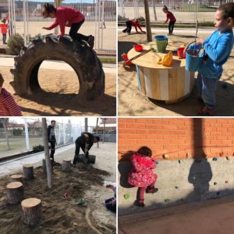 El resultat ha sigut fruit de la coordinació entre pares i mares, mestres, Ampa i Ajuntament! Cadascú ha posat el seu granet de sorra perquè, avui, els alumnes de parvulari gaudeixin d’un pati amb diferents espais. Aquests espais ofereixen diversitat d’aprenentatges i de joc: equilibri, escalada, joc simbòlic, natura,….