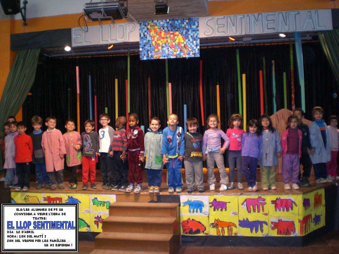 Divendres 12 d’Abril, a les 20h de la tarda, els nens i nenes de la classe dels Llops van representar l’obra de teatre: EL LLOP SENTIMENTAL. Va ser tot un èxit!!! Aquí teniu un petit recull de fotografies.