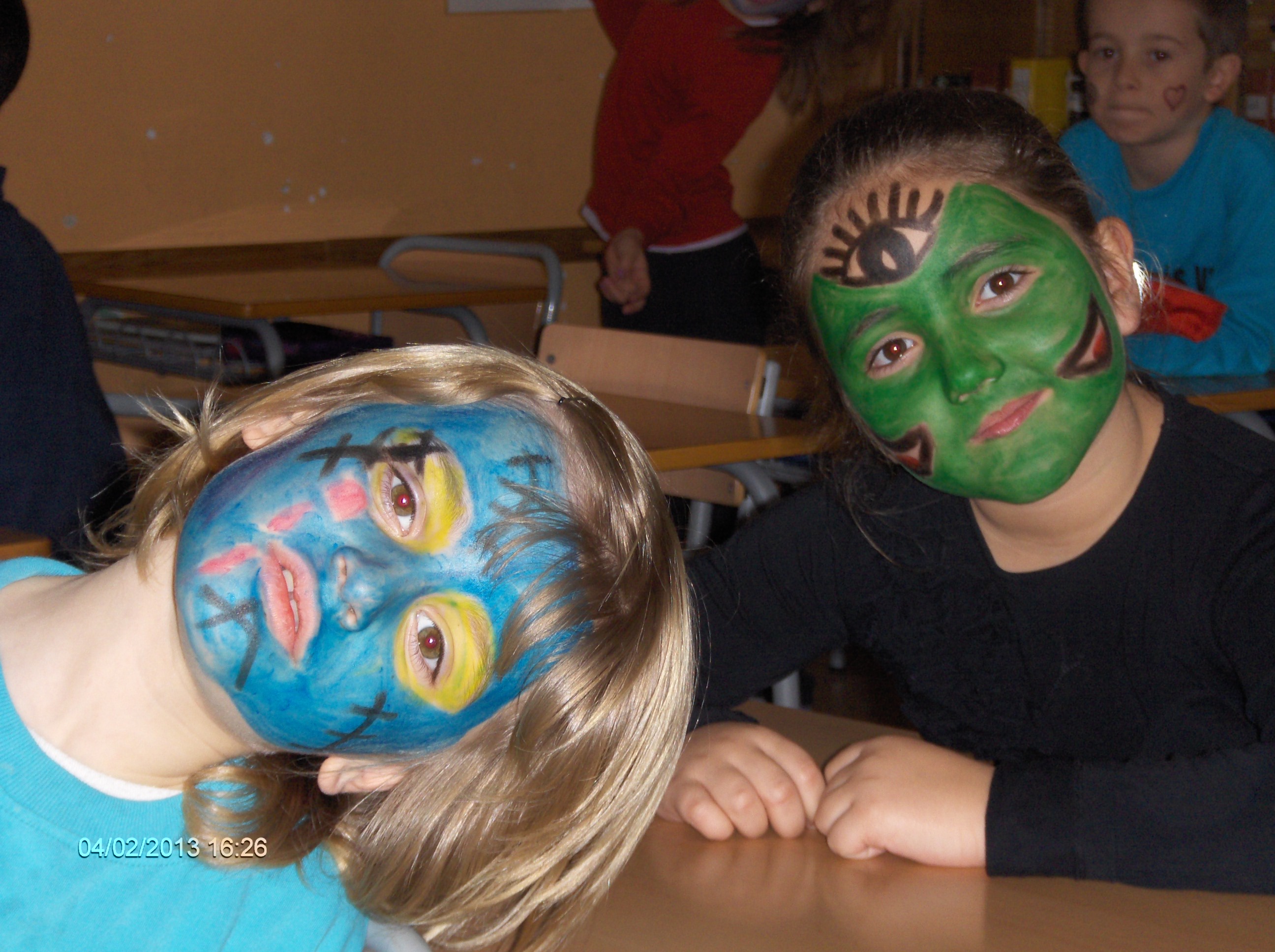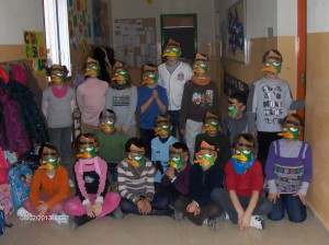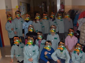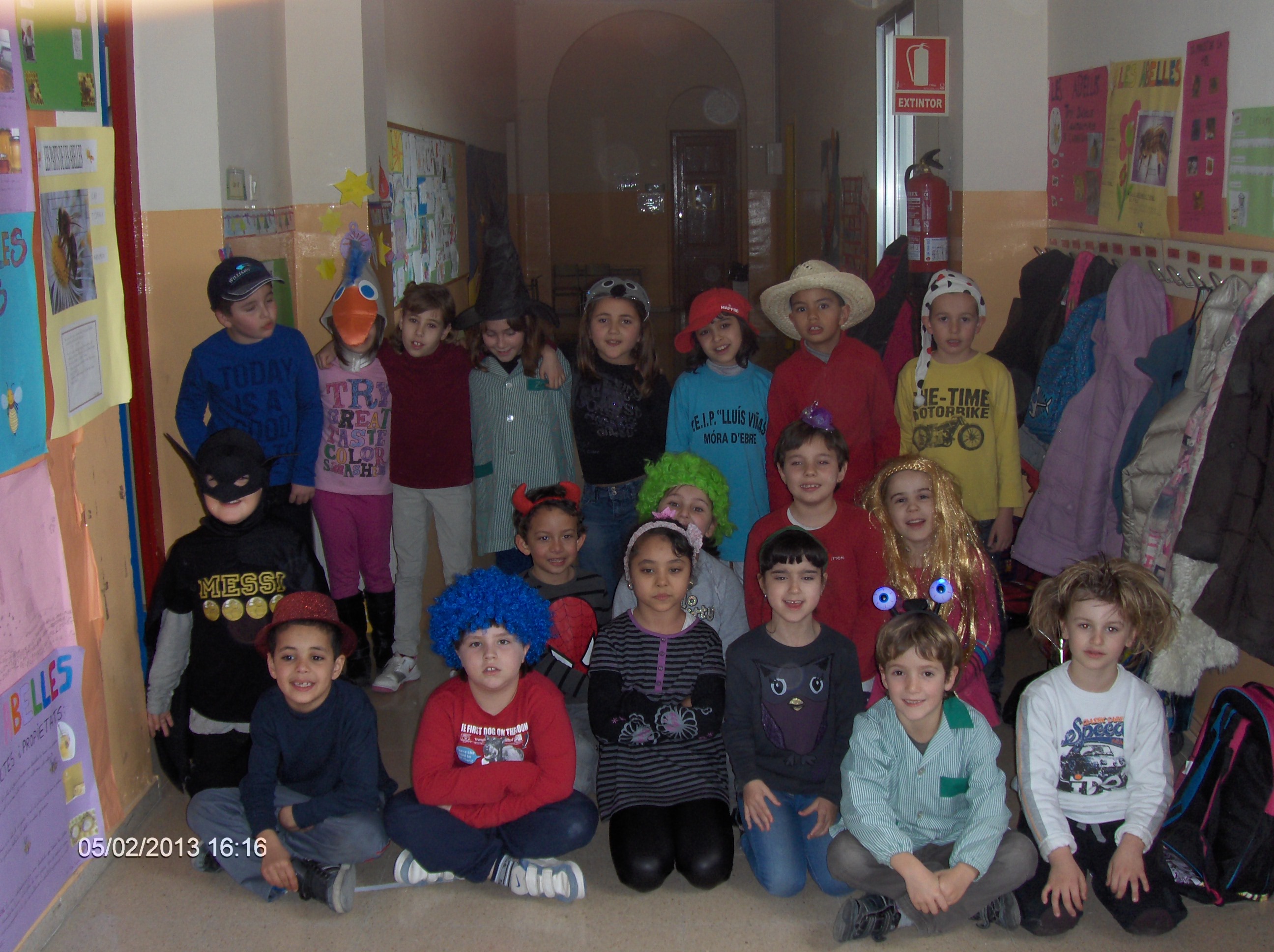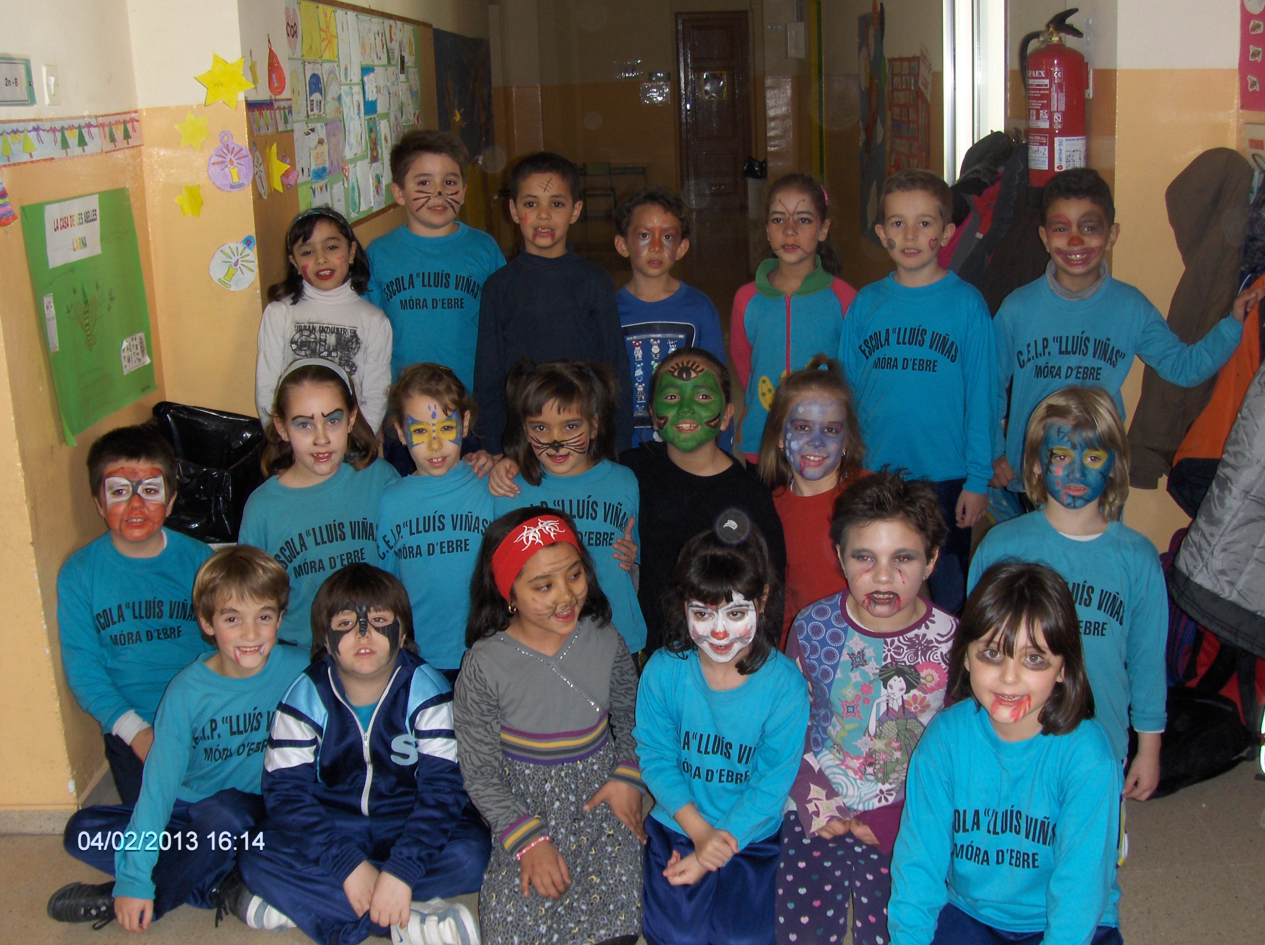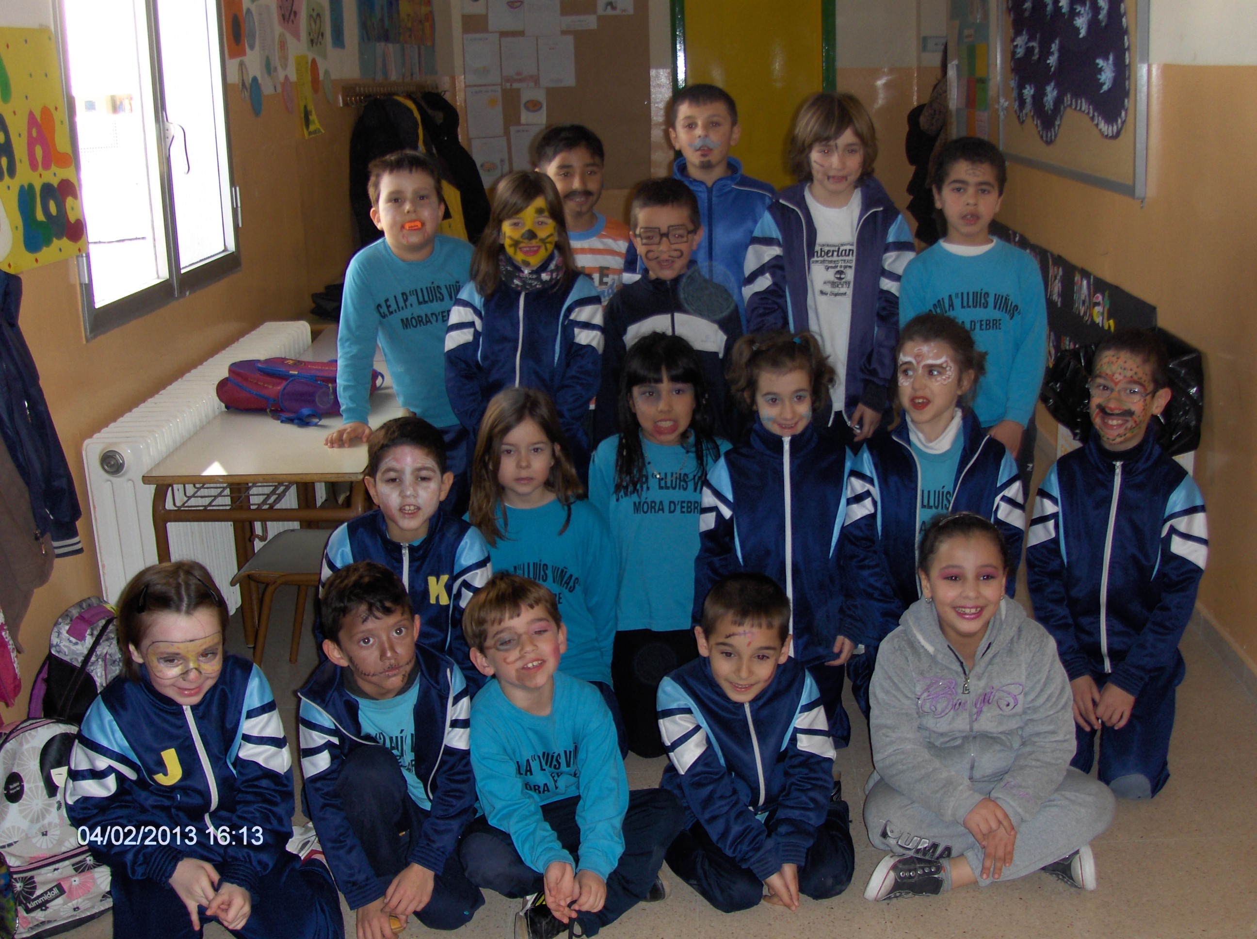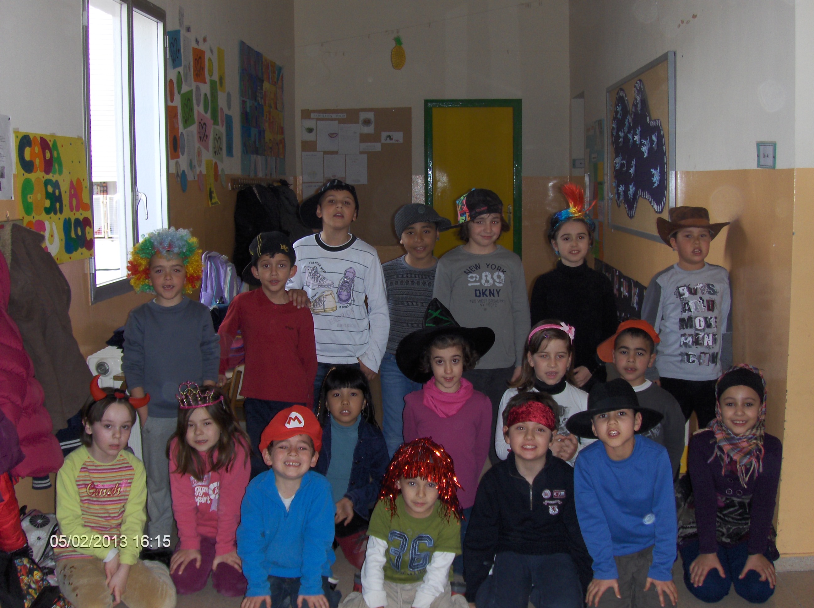 Per celebrar el Carnaval vam venir cada tarda amb la consigna indicada. Va ser molt divertit veure com cadascú ens havíem pintat la cara o amb alguna cosa al cap. Per acabar la setmana, vam sortir de l’escola amb una carota posada que cadascú havíem fet a la classe. ” Ara arriba Carnestoltes, tots sortim a passejar. Ens posem una disfressa per saltar, cantar i ballar…..”