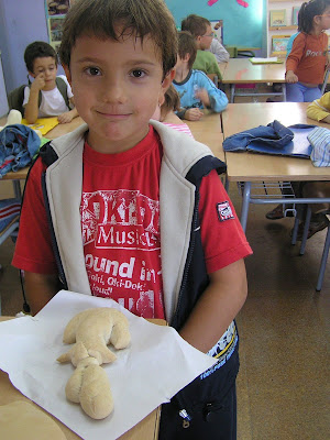 Els nens i nenes de 1r de l’escola, ahir dimarts, vam anar a una fleca de la Bisbal a fer pa. En les fotos podreu veure que això de fer de flequers ens agrada molt i vam poder remenar tot el que vam voler i al final veureu quins pans més bonics hem fet.