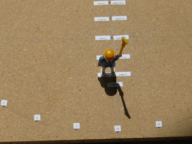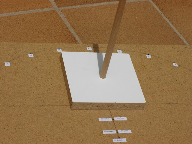 El pas següent serà passar-ho a escala real al terra de l’escola. A més a més també hi ha un projecte consistent en elaborar les senyalitzacions horàries i dels mesos amb rajoles de ceràmica que quedarien fixades al terra.