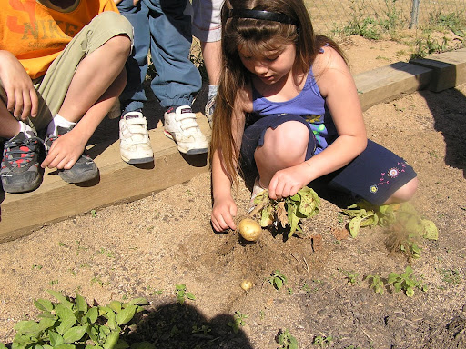 Una activitat molt educativa. És una manera de fer-lis entendre la natura i la nostra cultura (manera de conrear, cuidar les plantes,…). Per cert, les patates boníssimes, molt gustoses.