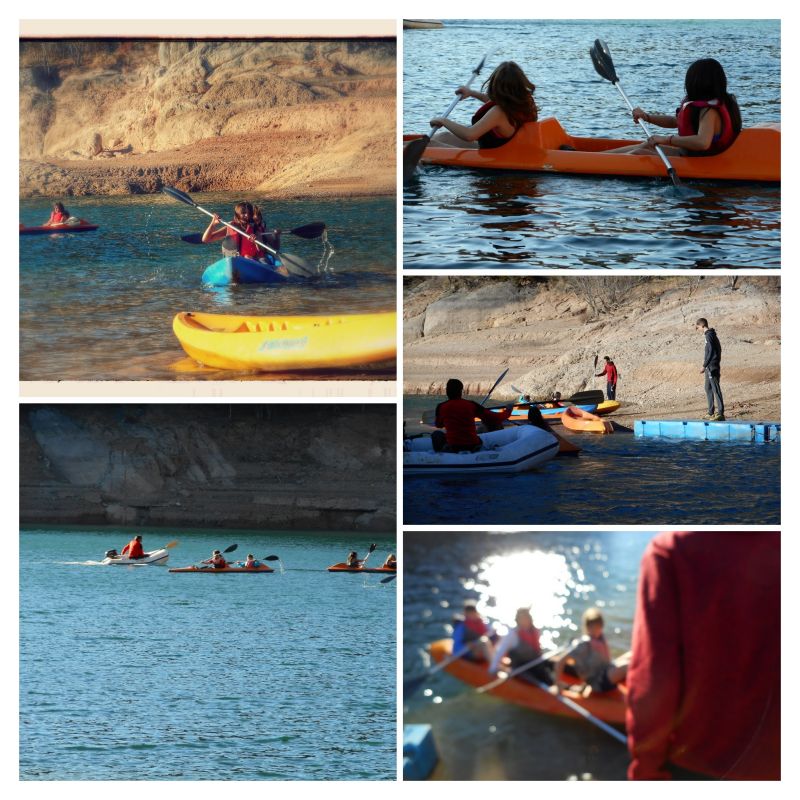 Aprofitant les hores de sol que quedaven a la tarda, ens vàrem dirigir fins al pantà de la Baells. Allà ens esperaren els monitors amb caiacs. Primer ens van ensenyar a fer servir els rems, i més tard ens vam atrevir a fer una passejada pel pantà. Va ser més difícil del que semblava, però al final ens ens vàrem sortir prou bé!.