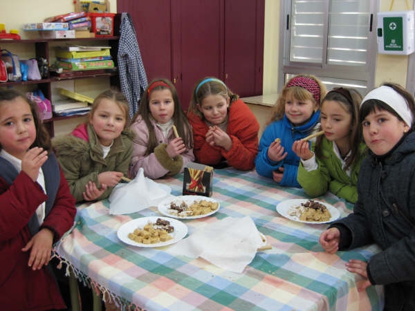 Els alumnes d´E Infantil i 1r van fer paperines per col.locar les castanyes que van coure els alumnes de 5è i 6è i els alumnes de 2n, 3r i 4t van parar la taula amb fruits secs, panellets i sucs.