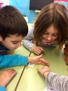 Fa unes setmanes vam iniciar el projecte dels animals a partir d’un joc de pistes. Teníem que resoldre quatre reptes matemàtics i trobar així els números secrets per obrir un candau que hi havia al baúl. Quan vam aconseguir obrir-lo, ens vam trobar un terrari amb insectes pal!